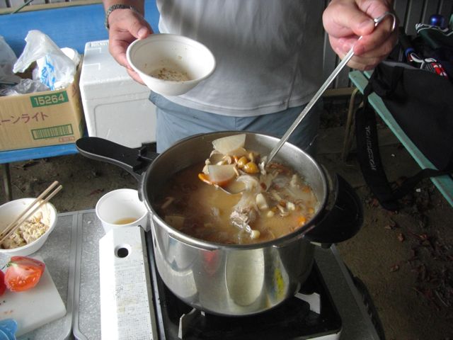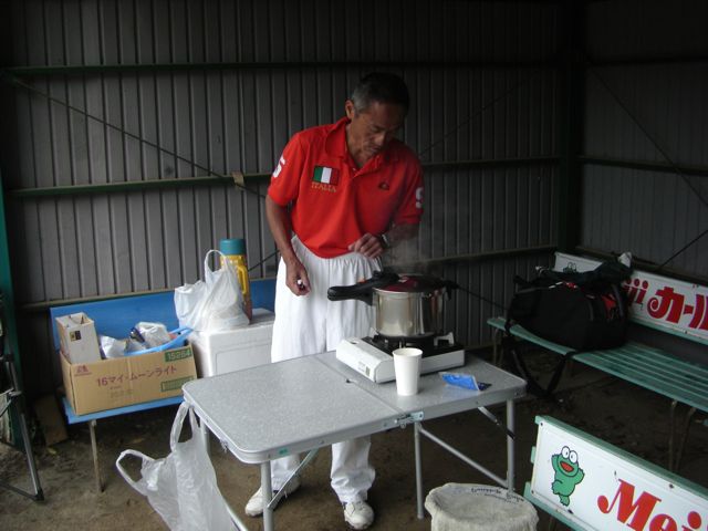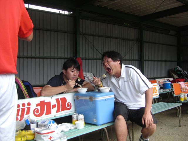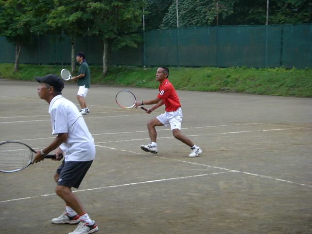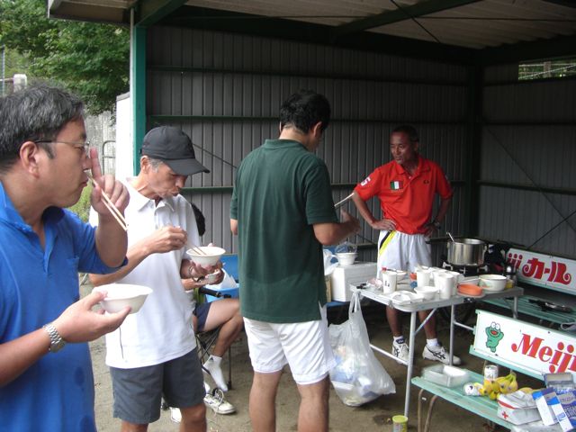 下が火山灰で水はけがいいのでは、ということでした。 さて、早速ウォーミングアップを始めるメンバー。 それを横目に、早速昼食の準備を始めるコーチ(^^) 前々回の合宿で高原故の沸点の低さに悩まされたので、今回は圧力鍋を持って来て対策は完璧とのことでした。 僕らはゲーム開始。全員とペアを組んで、勝率で順位をつけようと言うことになりました。 そして昼食。豚汁にそうめん、トマト、キュウリの漬け物、カキフライにおにぎり。信じられないことに、カキフライとおにぎり以外はすべてコーチのお手製! 当然僕らは大満足です。ごちそうさまでした。 午後はコーチ陣に挑戦もしました。右は唯一の勝利ペア。お見事です。さすが師匠! 3勝5敗+コーチに1敗の成績でブービー。気持ちよくウィナーをとってドヤ顔したりもしましたが……。ミス多過ぎでどうにもなりません。コーチのお一人には「大好き♡」とまで言われるほどカモられてしまいました……orz 朝からテニスをして大満足の1日でしたが、まだ夜はこれから! 人気ブログランキングへ PR
