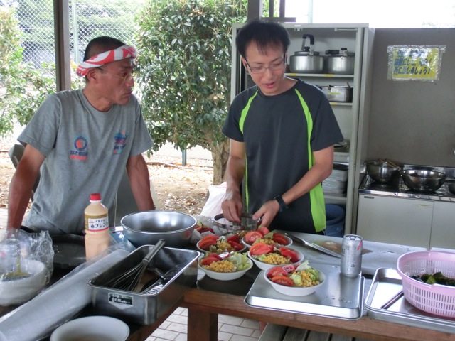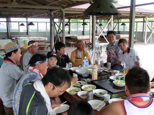 コーチの肝煎りで流し素麺が開催されました。スカイガーデンは初めて利用させていただきましたが、いい感じですね。個人的には中学時代さんざん利用したグラウンドが懐かしかったです。 コーチお手製の流し素麺マシンがこちら。 分解して持ち運びが可能な凄いやつです。お子様達も興味津々。 コーチの指導の元、せっせと働く眼鏡男子。今回は施設の予約を始め、彼にはかなり働いてもらいました。今後ともよろしくお願いしますm(_ _)m メインの流し素麺の前に盛り上がる面々。朝から料理を準備してくださったコーチには頭が上がりません。煮物はいったい何時に起きて作り始めたんでしょう? ごちそうさまでした。 と、ここでメインイベントの流し素麺の様子を入れるべきですが…… 脇のコートでテニスをしていたため、いっさい写真がありません!(><) また次の機会にリベンジを……。 遊んでくれたジュニア達にも感謝! 人気ブログランキングへ PR