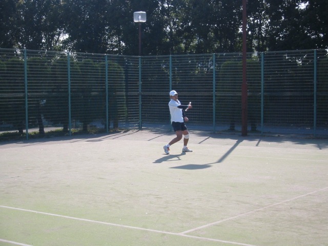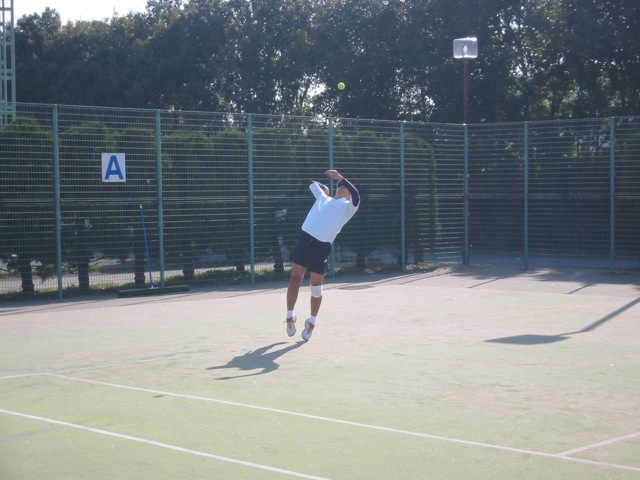 そんなのとは次元が違う話。スピンサービスに挑戦中と言いつつ最近は現状で満足しつつあったんですが、機能の最後の試合では3−4の自分のサービスをキープできずに負けてしまって多いに反省。そのサービスゲームでは、それまでより下半身を使ってスピードを上げて打って1stを入れることができました。が、それほど効果的だったとは言えず。 スピードを上げることと並行して、球種とコースのバリエーションを増やすこと、1stボレーの精度を上げること、リターン以降の展開(ロブ含む)をキチンと予測することなどを意識してやっていきたいですね。 先日のAB対決の際に撮っていただいた写真。これを見るとサービスに限らず左手がうまく使えてないような気がします。 前の記事のコメント欄に早速反省文を提出(^^)してくれた方を含め、他のメンバーもきっとやる気にあふれていることだろうと思うので、ぼちぼびふれんずDVD第6弾を作って今後に生かしてもらおう! あ、でもあの凄い人のプレーを見てない人もいるんだよなぁ。予備の電池をもっと早く用意しとけば良かったな……。 人気ブログランキングへ PR