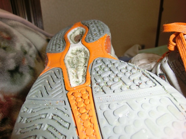 ニューバランスの軽量シューズを1年ほど使ってきましたが、合宿中にアウトソールのつま先部分が剥がれ(引きずる癖があるため。接着剤で補修)、ソールの摩耗でグリップしなくなってきました。僕の貧脚では今までソールの摩耗はあまりなかったんですが、購入時の予想通り早かったです。全体の革も伸びてしまった感じがあって、同じ軽量シューズのプレステージライトよりも耐久性に難ありでしたね。