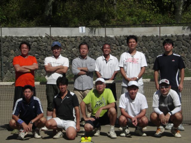 結構うまく撮れました。 練習の方は開始時間に4人しか集まらず体力が保つか心配になるくらいでしたが、最終的には10人越えました。 ランニングストロークをフォアとバックで。どうしても振られたときにはボールに突っ込みがち。真後ろから撮影したら、他の人と比べられていいかもしれない。 続いてリターンダッシュからボレー。ストレートロブを追って、また前に詰めてボレー。一回が長くなるので特に太腿がキツい練習です。ここでもコーチのアドバイスはバランスと距離感。足が動かないのでわかっていてもどうにもできないですが……。 最後はこれもリターンダッシュから2vs2でボレスト。苦手な乱打形式の練習ですが、コーチの「振り切れ」を実践しているとちょっと安定して来た気がします。もう一つの苦手、リターンでも同じ。この調子でなんとかヘタレっぷりを克服したいものです。 PR 1日目とは違って天候に恵まれました。でもちょっと乾燥気味でホコリっぽかった感じ。1日目のしっとりしてた方が良かったかも。 市民ダブルス大会の記事で他の二組が予選突破と書きましたが、うち一組はDEFによる勝ち上がりだったのですが、飲み会でそれが火種となって遺恨が生まれた結果? 朝一で対決してタイブレイク17-15まで争っていたようです。 昼食で再びコーチにお世話になって一旦終了。記念撮影。 野郎ばかりでむさ苦しくも楽しい合宿でした。 午後は時間が取れる人が残って1面だけでのんびりと。 さすがにテニス漬けの2日間は体力使いました。リターンダッシュを試してみたり、ロブを工夫してみたり、テニス的にも実りあるものだった気がします。 次は春合宿だそうですよ。 人気ブログランキングへ