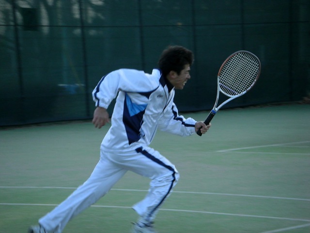 ところで、そのGFの方が土曜の僕の試合を録画していてくれました。しかもハイスピードカメラですよ! 以前も市民ダブルスで対戦した折、後でビデオデータを頂いたりしてお世話になりまくりです。ほんとありがとうございます。 試合前のサービス練習の様子ですが、これを見るとスイングが横方向へ流れ過ぎてる感じですね。今練習中の回転系サービスは右上方向にスイングするとはいえ、これではこすっているだけになっています。威力と安定性を同時に満たすには、やはり内転でラケットを前方向に振っていけるようにならないと! あとはジャンプがめっちゃ低い(^^) そのせいで、自分でも着地と同時に打ってる気がするくらい。タイミングを修正するか、もっと高く飛ぶか。 とまぁ、カッコを気にする当ブログ的にはまずまずですが、サービスキープに必要なのはバリエーションだということがうまい人を見てるとわかります。今はセンターとワイドに打ち分ける程度ですが、ボディにも打てるように、そして球種も増やせるように練習していきたいです。